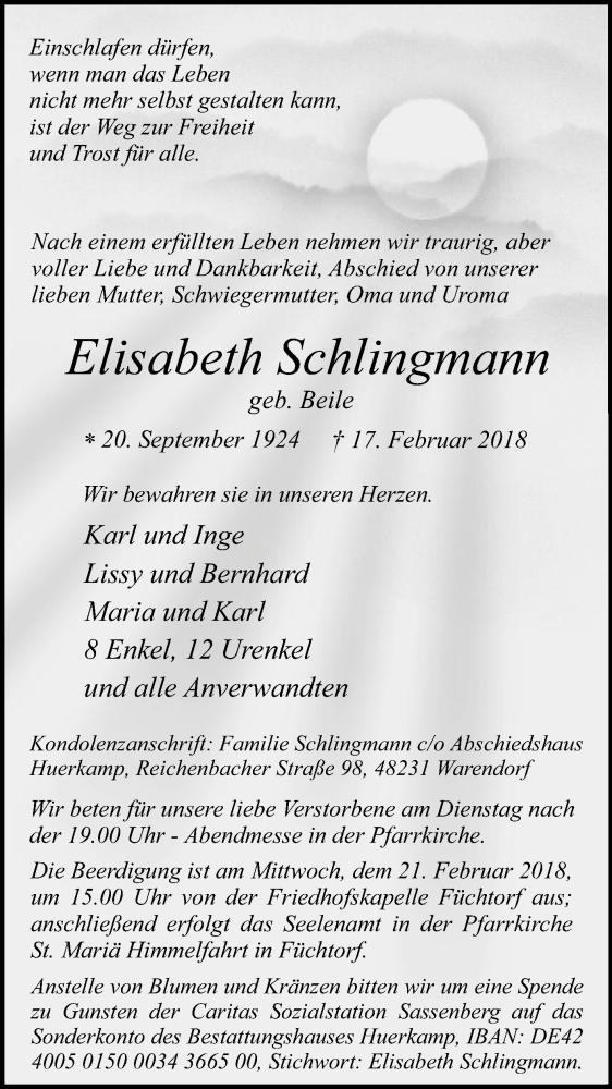 Hier finden Sie alle Traueranzeigen aus der Zeitung, die bisher für Elisabeth Schlingmann erschienen sind. Weitere Traueranzeigen, die in der Zeitung erscheinen, werden hier ebenfalls aufgelistet