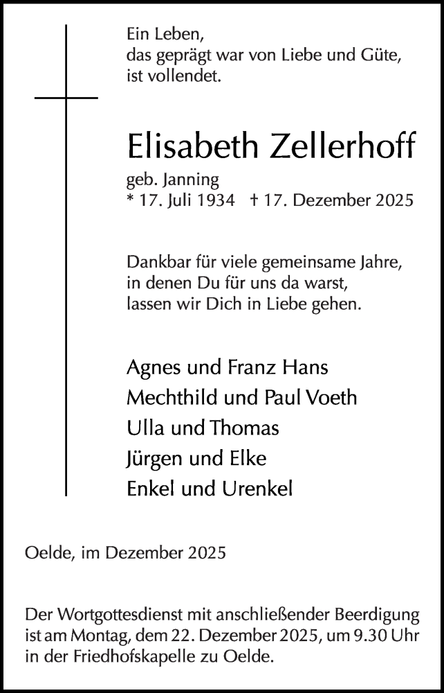 Hier finden Sie alle Traueranzeigen aus der Zeitung, die bisher für Elisabeth Zellerhoff erschienen sind. Weitere Traueranzeigen, die in der Zeitung erscheinen, werden hier ebenfalls aufgelistet