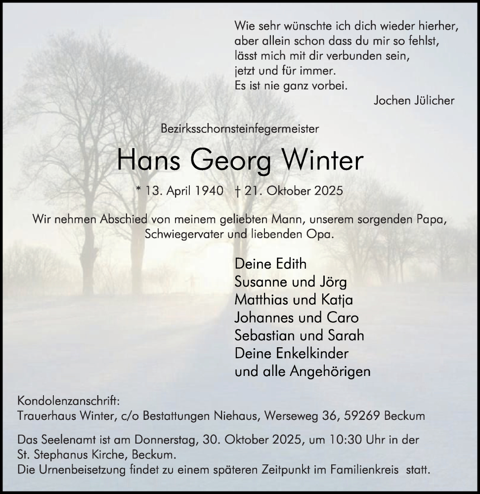 Hier finden Sie alle Traueranzeigen aus der Zeitung, die bisher für Hans Georg Winter erschienen sind. Weitere Traueranzeigen, die in der Zeitung erscheinen, werden hier ebenfalls aufgelistet