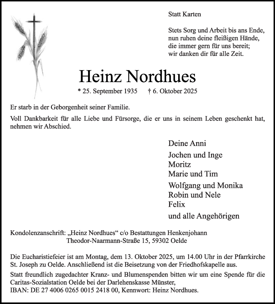 Hier finden Sie alle Traueranzeigen aus der Zeitung, die bisher für Heinz Nordhues erschienen sind. Weitere Traueranzeigen, die in der Zeitung erscheinen, werden hier ebenfalls aufgelistet