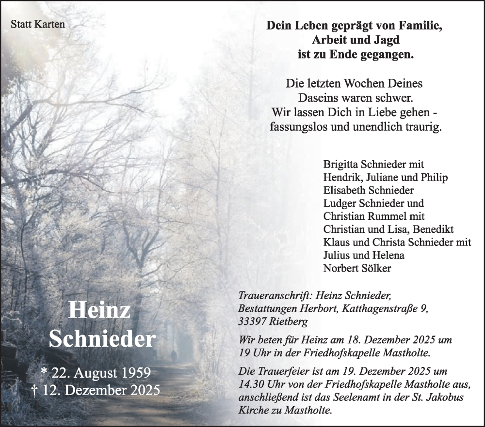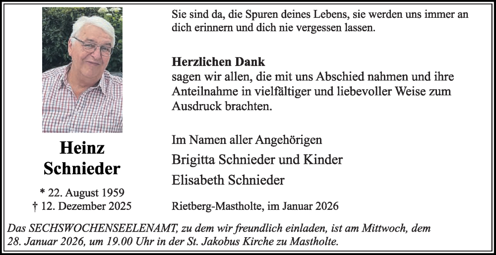 Hier finden Sie alle Traueranzeigen aus der Zeitung, die bisher für Heinz Schnieder erschienen sind. Weitere Traueranzeigen, die in der Zeitung erscheinen, werden hier ebenfalls aufgelistet