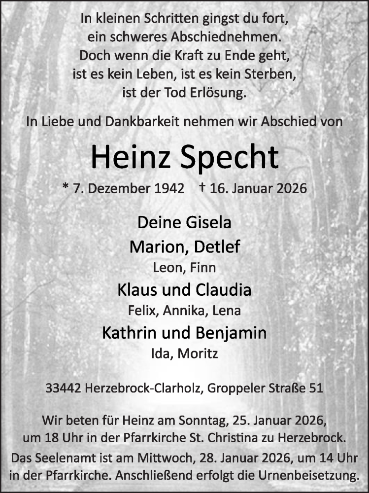 Hier finden Sie alle Traueranzeigen aus der Zeitung, die bisher für Heinz Specht erschienen sind. Weitere Traueranzeigen, die in der Zeitung erscheinen, werden hier ebenfalls aufgelistet