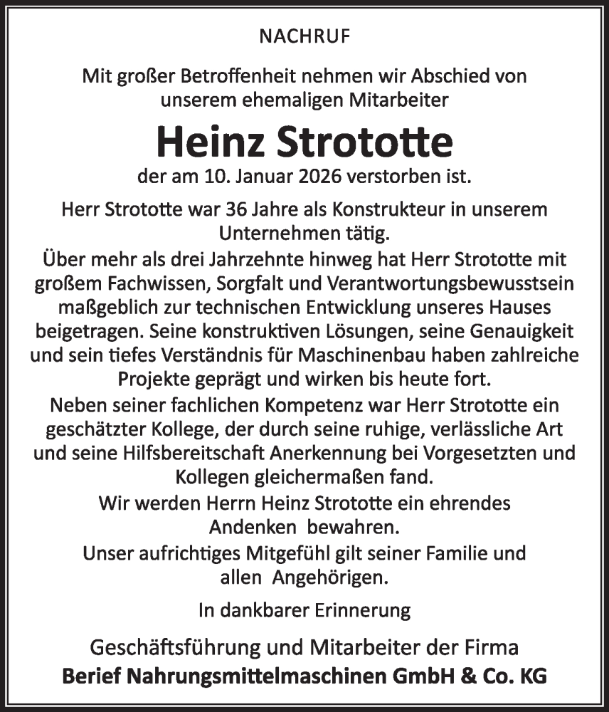 Hier finden Sie alle Traueranzeigen aus der Zeitung, die bisher für Heinz Strototte erschienen sind. Weitere Traueranzeigen, die in der Zeitung erscheinen, werden hier ebenfalls aufgelistet