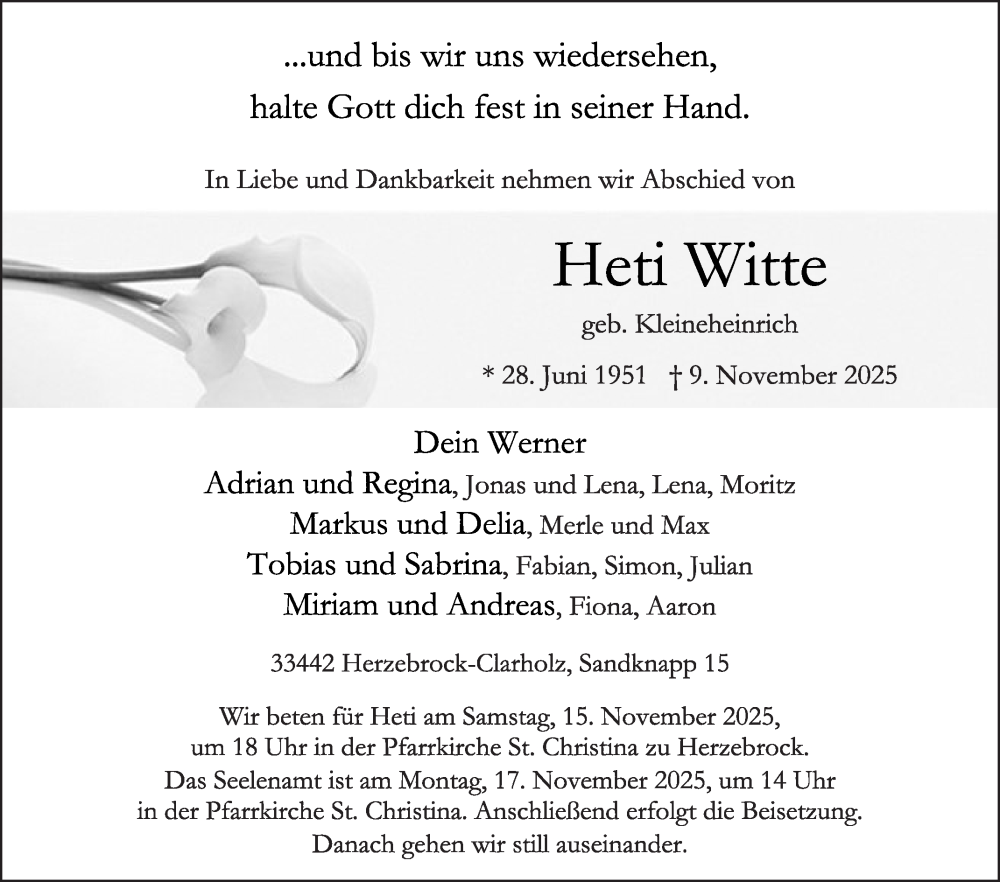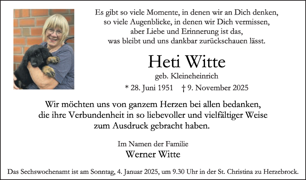 Hier finden Sie alle Traueranzeigen aus der Zeitung, die bisher für Heti Witte erschienen sind. Weitere Traueranzeigen, die in der Zeitung erscheinen, werden hier ebenfalls aufgelistet