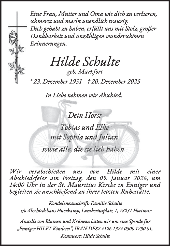 Hier finden Sie alle Traueranzeigen aus der Zeitung, die bisher für Hilde Schulte erschienen sind. Weitere Traueranzeigen, die in der Zeitung erscheinen, werden hier ebenfalls aufgelistet