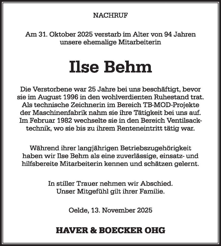 Hier finden Sie alle Traueranzeigen aus der Zeitung, die bisher für Ilse Behm erschienen sind. Weitere Traueranzeigen, die in der Zeitung erscheinen, werden hier ebenfalls aufgelistet