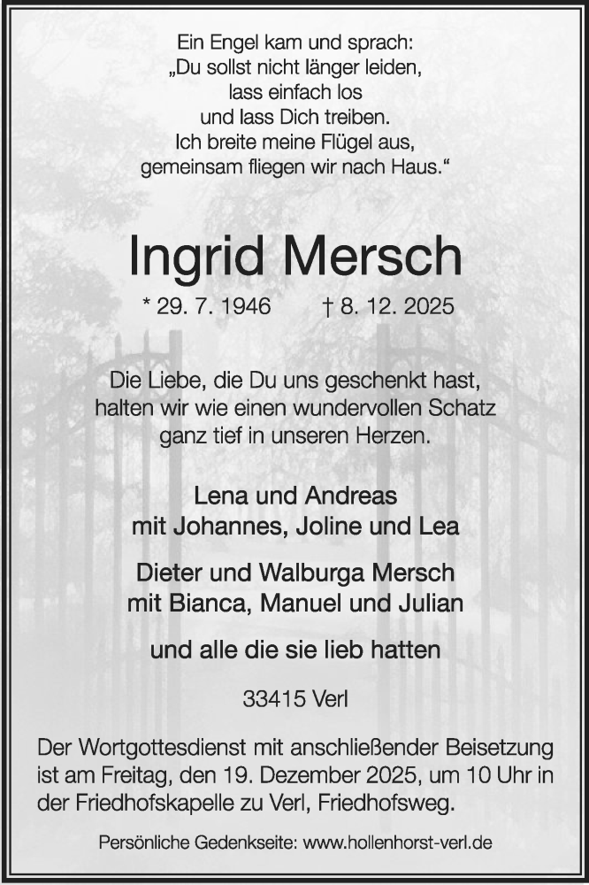 Hier finden Sie alle Traueranzeigen aus der Zeitung, die bisher für Ingrid Mersch erschienen sind. Weitere Traueranzeigen, die in der Zeitung erscheinen, werden hier ebenfalls aufgelistet
