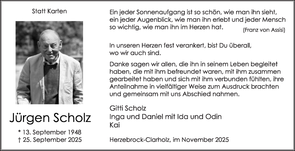 Hier finden Sie alle Traueranzeigen aus der Zeitung, die bisher für Jürgen Scholz erschienen sind. Weitere Traueranzeigen, die in der Zeitung erscheinen, werden hier ebenfalls aufgelistet