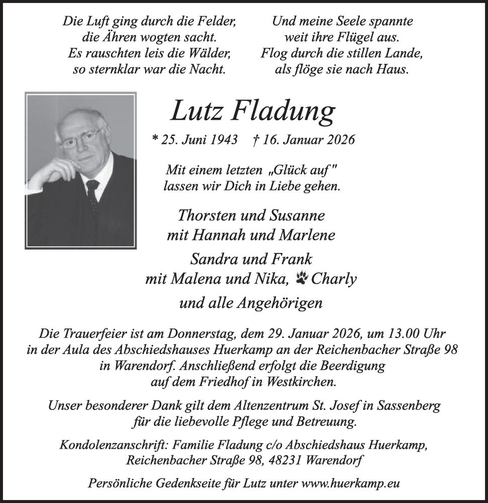 Hier finden Sie alle Traueranzeigen aus der Zeitung, die bisher für Lutz Fladung erschienen sind. Weitere Traueranzeigen, die in der Zeitung erscheinen, werden hier ebenfalls aufgelistet