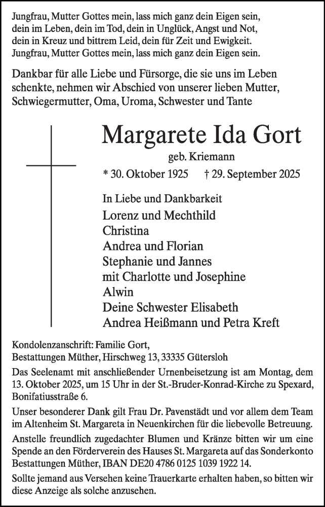 Hier finden Sie alle Traueranzeigen aus der Zeitung, die bisher für Margarete Ida Gort erschienen sind. Weitere Traueranzeigen, die in der Zeitung erscheinen, werden hier ebenfalls aufgelistet