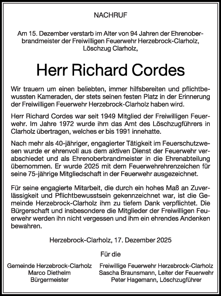 Hier finden Sie alle Traueranzeigen aus der Zeitung, die bisher für Richard Cordes erschienen sind. Weitere Traueranzeigen, die in der Zeitung erscheinen, werden hier ebenfalls aufgelistet