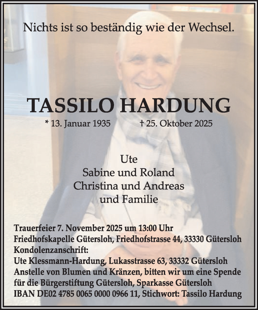 Hier finden Sie alle Traueranzeigen aus der Zeitung, die bisher für Tassilo Hardung erschienen sind. Weitere Traueranzeigen, die in der Zeitung erscheinen, werden hier ebenfalls aufgelistet
