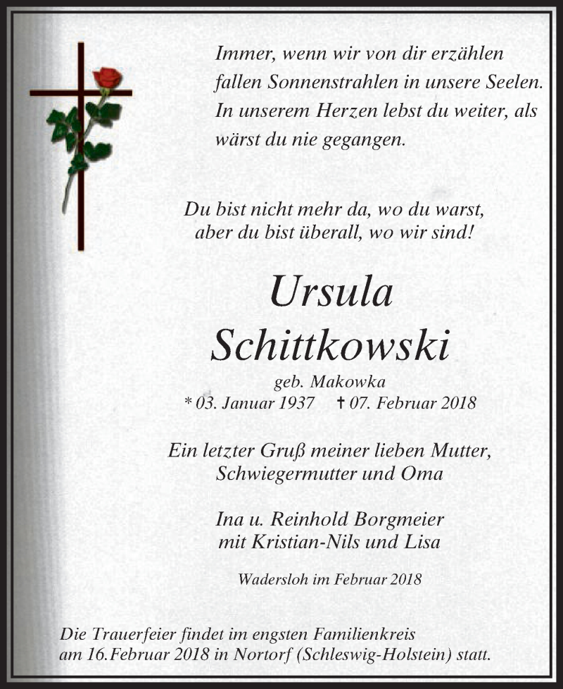 Hier finden Sie alle Traueranzeigen aus der Zeitung, die bisher für Ursula Schittkowski erschienen sind. Weitere Traueranzeigen, die in der Zeitung erscheinen, werden hier ebenfalls aufgelistet